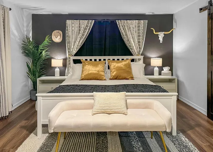 In the vibrant Houston Heights neighborhood, Casa Hosum is an inviting retreat just seven minutes from downtown. This charming villa perfectly encapsulates the area's unique character, adorned with stunning Victorian homes and eclectic shops that encourage exploration. Guests will find themselves immersed in the artistic energy of the Heights, with its tree-lined streets beckoning for leisurely strolls.
